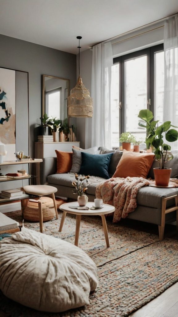 Start with a neutral color palette – whites, grays, and natural wood tones. Add warmth with textiles like chunky knit throws and sheepskin rugs. My apartment went from “sad beige” to “sophisticated Scandi” just by adding the right textures.