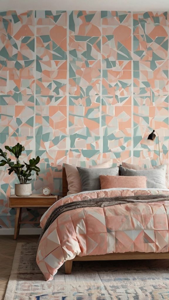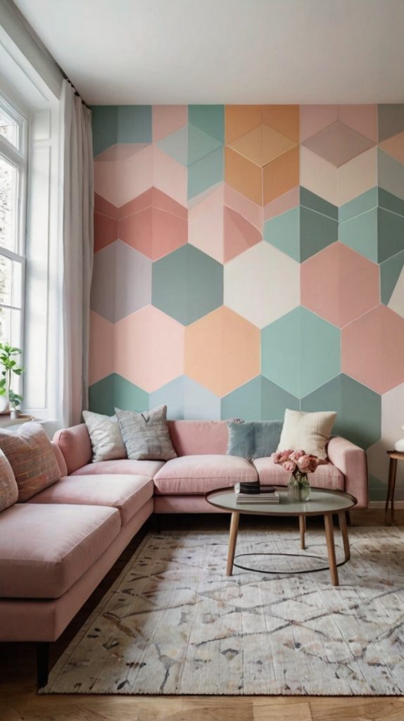 The best part about geometric murals? They’re completely customizable. Hate it after a year? Paint over it. Want something subtle? Stick to tone-on-tone colors. Feeling bold? Go full rainbow. Just remember – measure twice, tape once, because repositioning tape on wet paint is a nightmare I wouldn’t wish on anyone.