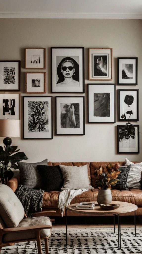 Gallery walls might seem overdone, but hear me out – when done right, they’re absolutely stunning. The key word here is “mixed.” Matching frames are so 2010. Today’s gallery walls embrace chaos in the best way possible.