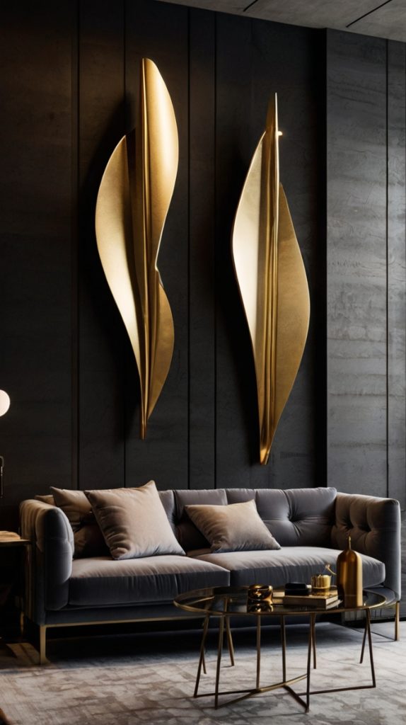When flat art isn’t cutting it anymore, metallic wall sculptures add that three-dimensional drama your walls are craving. These pieces catch light, create shadows, and basically turn your wall into a dynamic art installation.