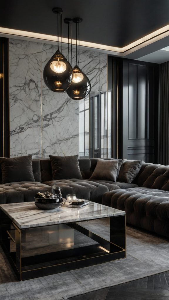 Lighting sells the luxury vibe. Swap basic fixtures for statement pieces. A dramatic pendant light or sleek floor lamp transforms the whole room’s energy.