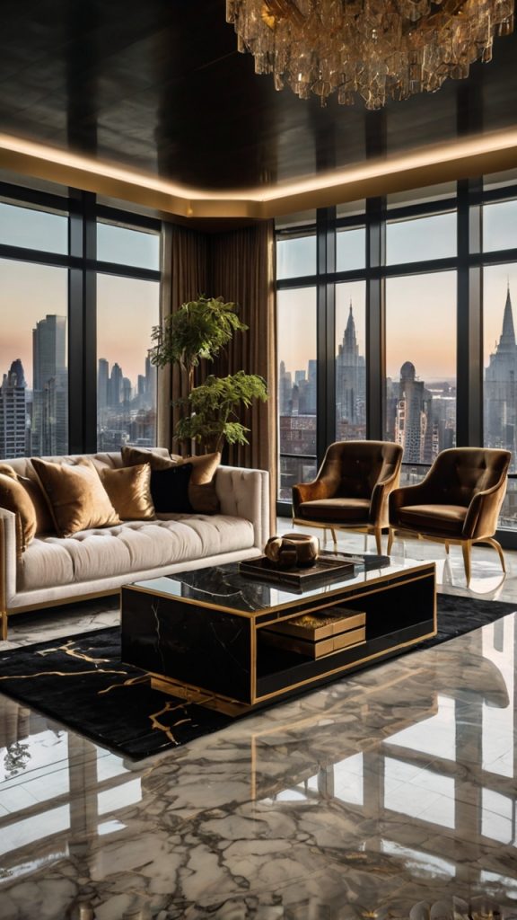 Layer your textures thoughtfully. Combine smooth leather with nubby linen, polished marble with rough wood grain. The color palette stays refined—deep blues, rich browns, charcoal grays, with maybe champagne gold accents if you’re feeling fancy.