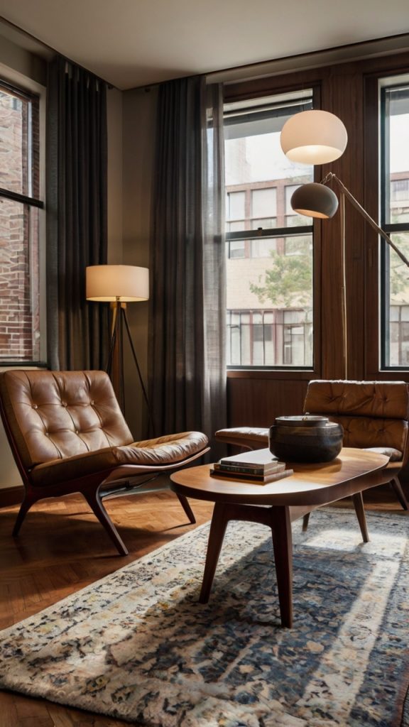 Invest in one or two authentic pieces if you can—a real Eames lounge chair or vintage credenza becomes your room’s centerpiece. Can’t afford the real deal? Quality reproductions work fine (FYI, nobody’s checking labels when they’re comfortable on your couch).