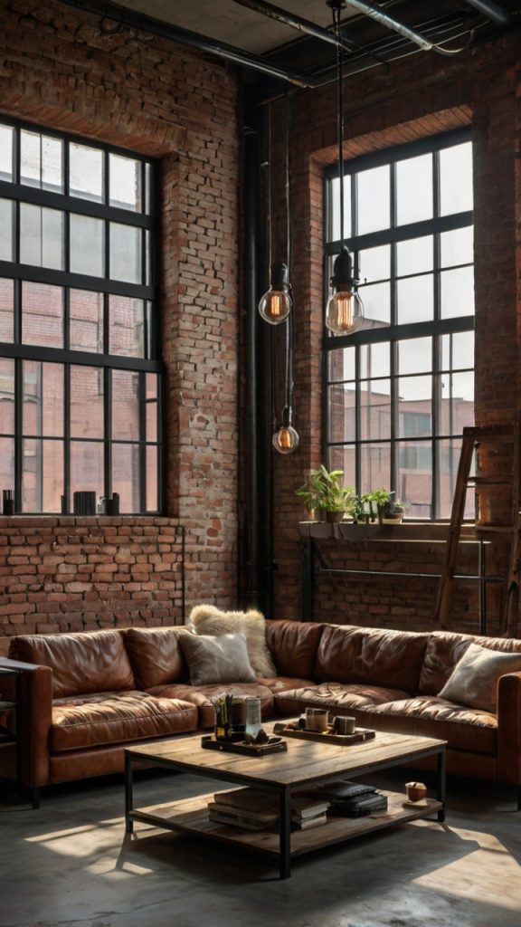 For furniture, think raw materials and clean lines. Get yourself a reclaimed wood coffee table (or make one from old pallets if you’re handy), pair it with a leather sofa in brown or black, and add some Edison bulb lighting. The key here is mixing textures—smooth leather against rough wood, polished metal against weathered surfaces.