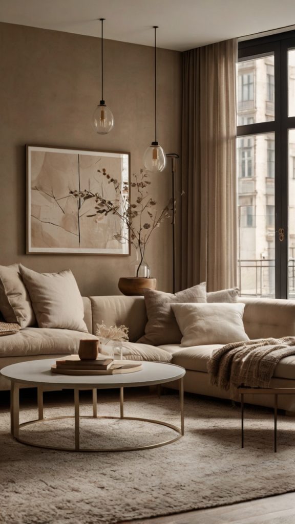 Build your base with varying shades of beige, cream, gray, and brown. Sounds boring? It’s not when you layer textures like a pro. Linen curtains, wool rugs, leather accents, wooden furniture—each adds depth without adding color chaos.