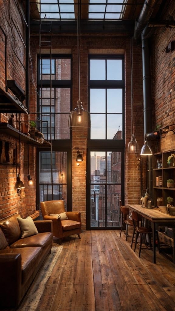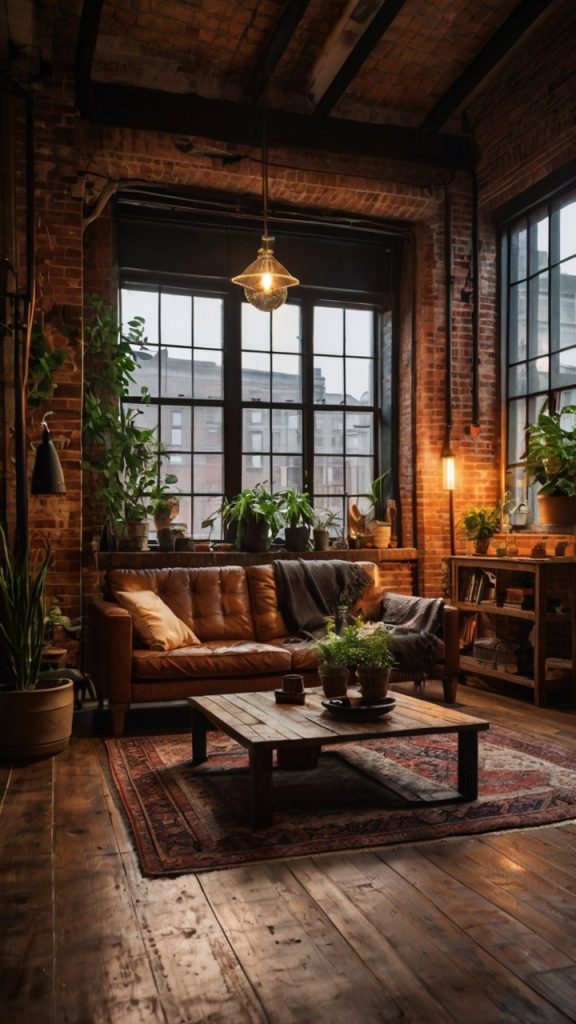 Raw materials and exposed elements work here too, but soften them with textiles. A chunky knit throw, thick curtains, or a vintage rug prevents the space from feeling too harsh.