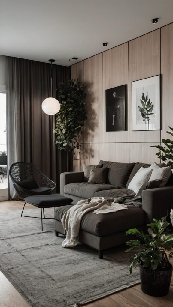 Paint those walls charcoal gray, navy blue, or even black if you’re feeling bold. I know what you’re thinking—won’t it feel like a cave? Not if you do it right. The trick is layering your lighting. Combine overhead fixtures with table lamps and LED strips behind your TV or shelving units.
