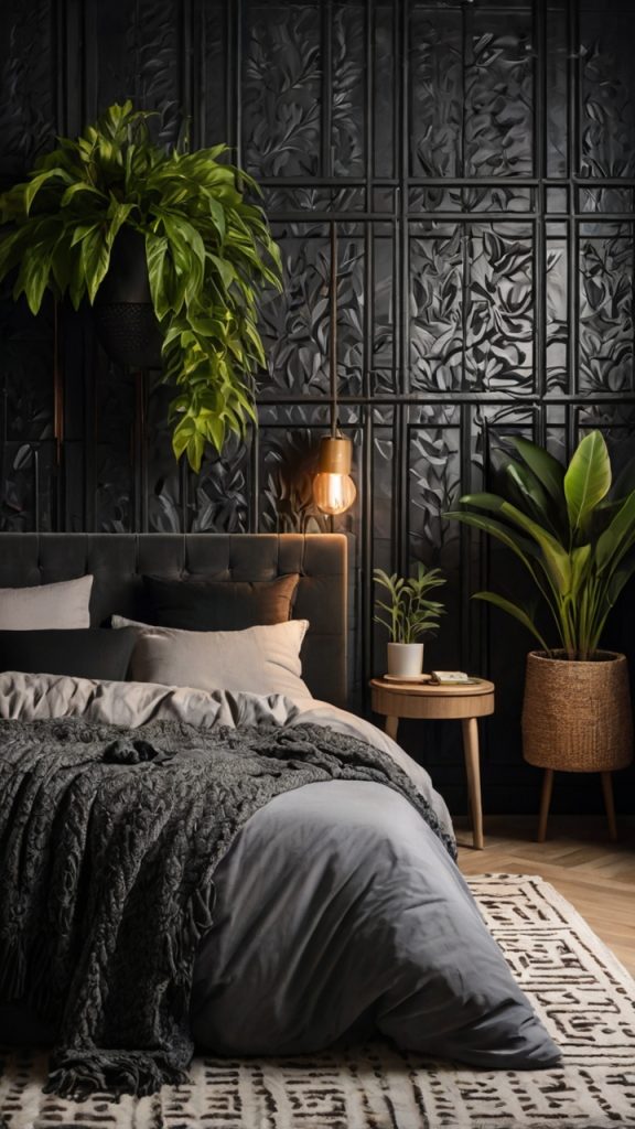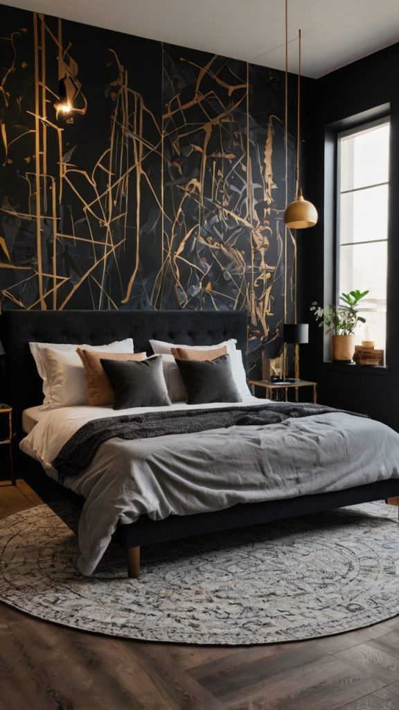 Black Wallpaper Accent Wall Ideas for Bedrooms