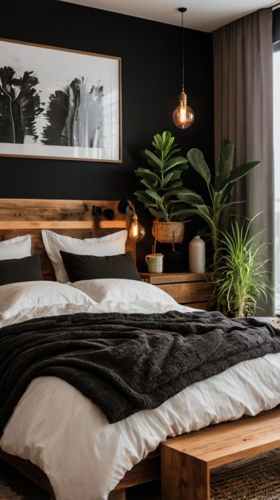 I once helped a friend transform her bedroom with a black accent wall, and she was terrified it would feel like a cave. We added chunky knit throws, plush pillows in cream and caramel tones, and some warm wood furniture. The result? A room so cozy, her husband jokes about never wanting to leave it.