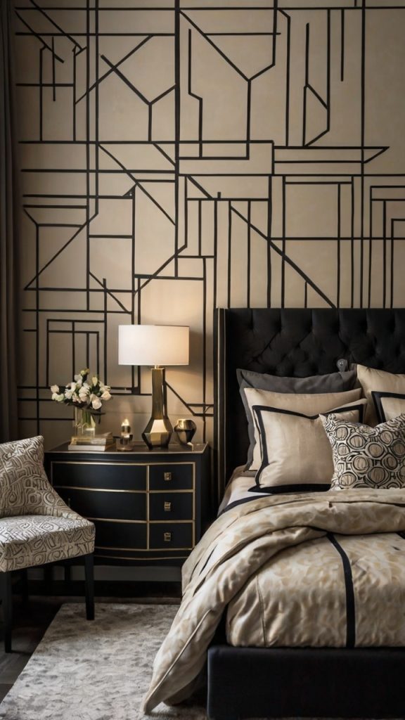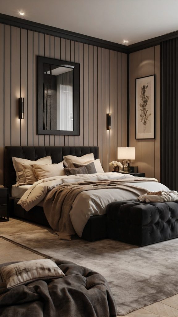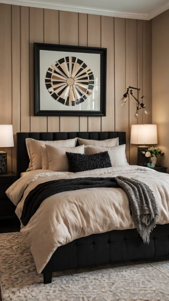 Black and Beige Bedroom Wall Accent Ideas