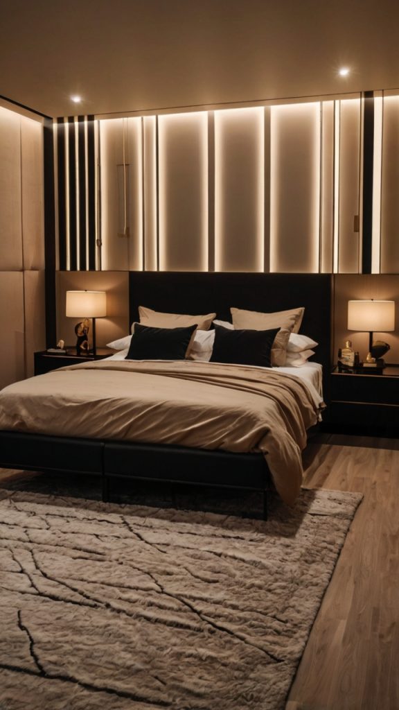 Black and Beige Bedroom Lighting and Ambiance
