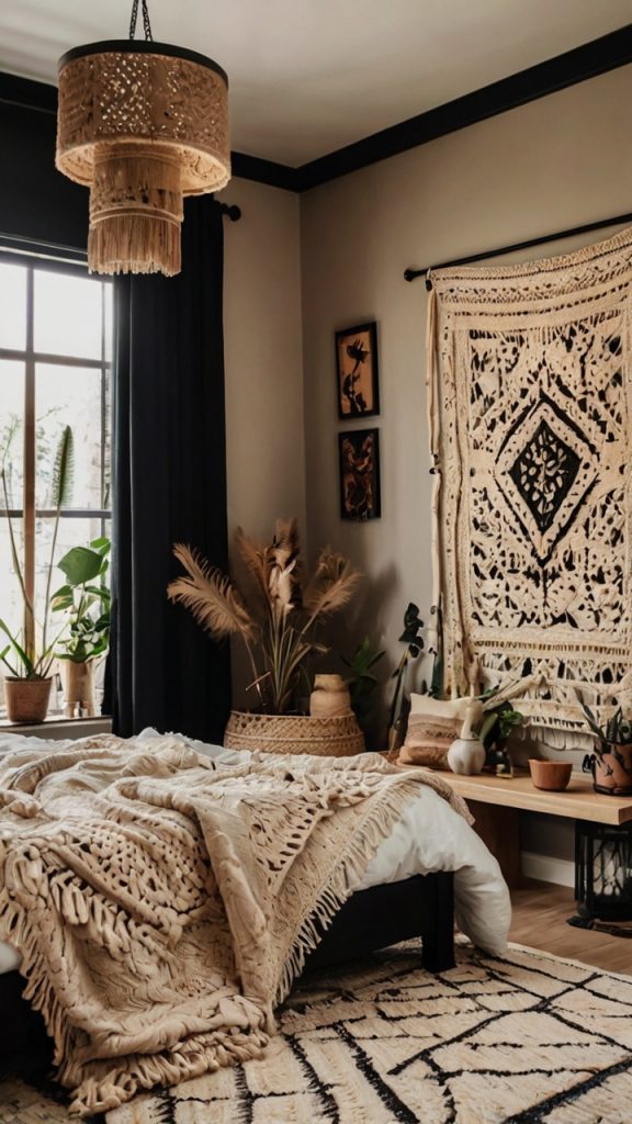 Black and Beige Boho Bedroom Design Ideas