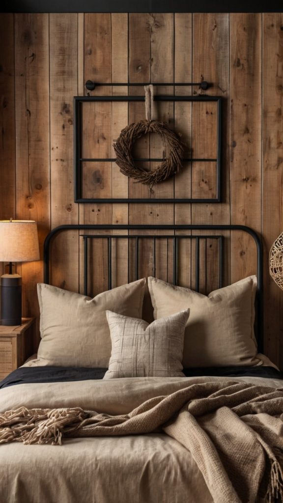 Who says rustic can’t embrace black? Combining weathered wood in beige tones with black metal accents creates the perfect modern farmhouse vibe. I love using reclaimed barn wood for headboards, then pairing them with black iron bed frames or hardware.