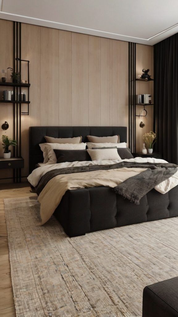 Cozy Black and Beige Minimalist Bedroom