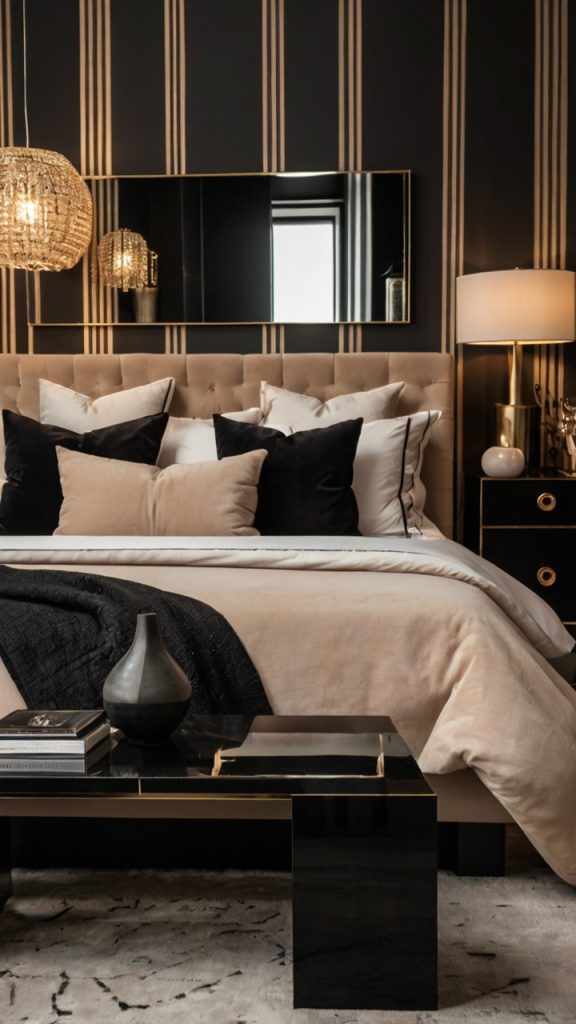 Sophisticated Black and Beige Bedroom Accessories