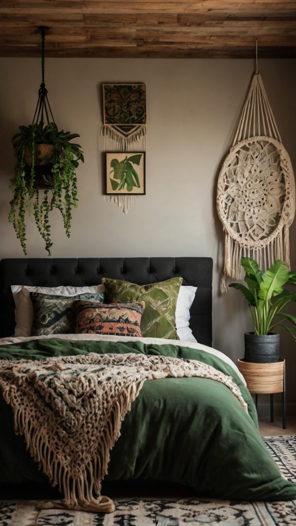 Black and Green Boho Chic Bedroom