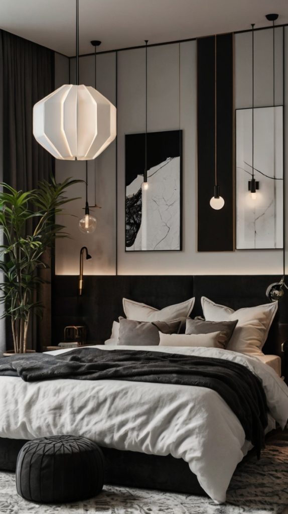 Lighting can make or break your monochrome bedroom. The right lighting transforms flat black and white into a dynamic, living space.