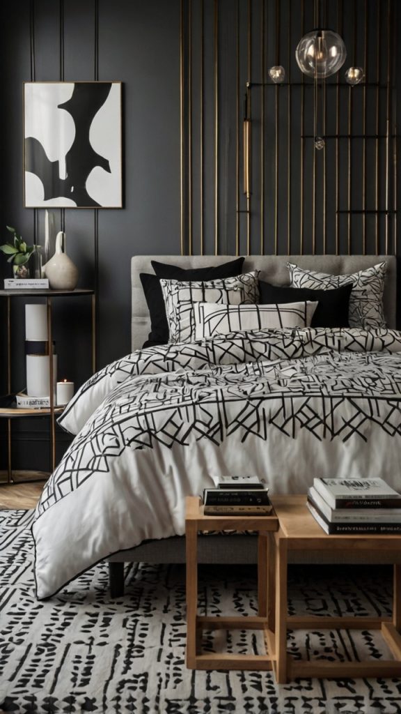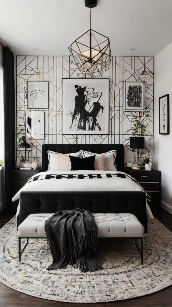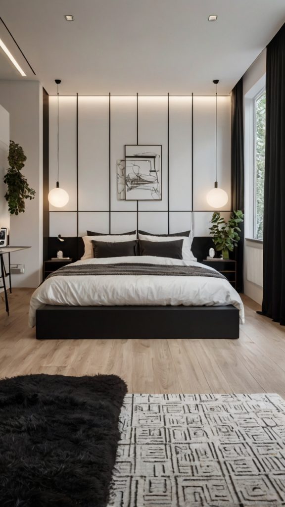 Modern design takes the black and white palette and runs wild with it. Think sharp angles, mixed materials, and that “I definitely have my life together” vibe. Modern monochrome bedrooms scream sophistication without trying too hard.