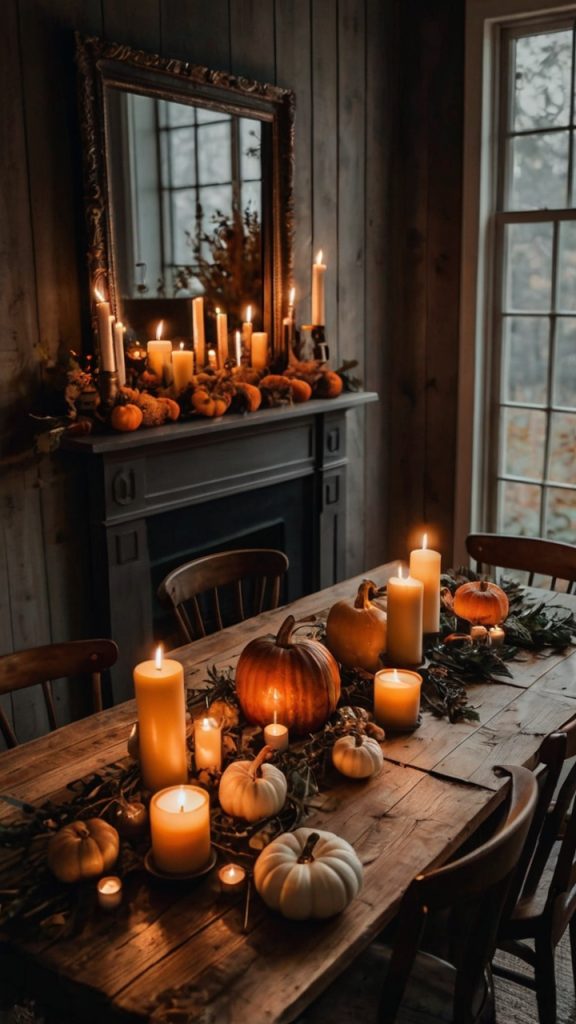 Mix different candle heights – tall tapers, medium pillars, and low votives. This variation creates a dynamic display that draws the eye up and across your table.