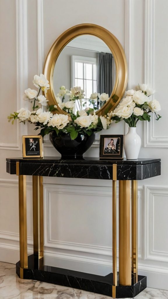 Listen, if you’re going to splurge on one piece, make it a black marble entryway table. Nothing says luxury quite like marble, and black marble? That’s next-level sophisticated. Even faux marble works – I won’t tell if you won’t!