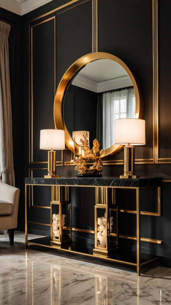 Balance is everything here. Too much gold and you’ll feel like you’re living in a casino. Incorporate texture through a velvet runner or a small faux fur accent. These soft elements prevent the look from becoming too harsh or flashy.
