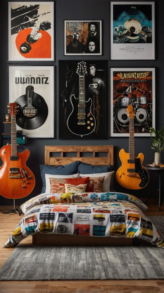 Got a future rock star? Music-themed rooms celebrate creativity while encouraging practice. Mount guitars on the wall as functional art. Create a gallery wall with vintage concert posters or album covers.