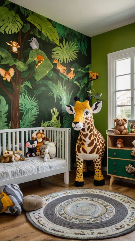 Transform boring walls into a wild adventure with a jungle safari theme. This design brings nature indoors and creates a calming yet exciting environment. Think less cartoon animals, more National Geographic vibes.