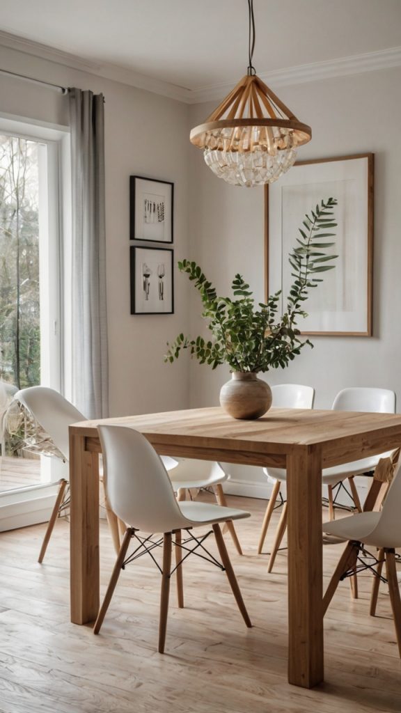 The beauty of Scandinavian chandeliers? They make small spaces feel larger and dark rooms feel brighter. If your dining room lacks natural light, this style might be your secret weapon.