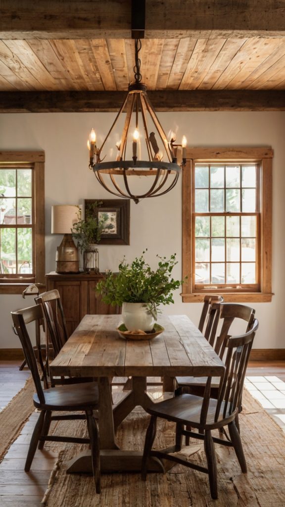 Rustic farmhouse chandeliers bring warmth and character that makes everyone want to linger over dinner. I installed a wrought iron and wood beam chandelier in my own dining room last year, and FYI, it completely changed the entire atmosphere. Suddenly, Tuesday night takeout felt like a cozy gathering at a countryside inn.