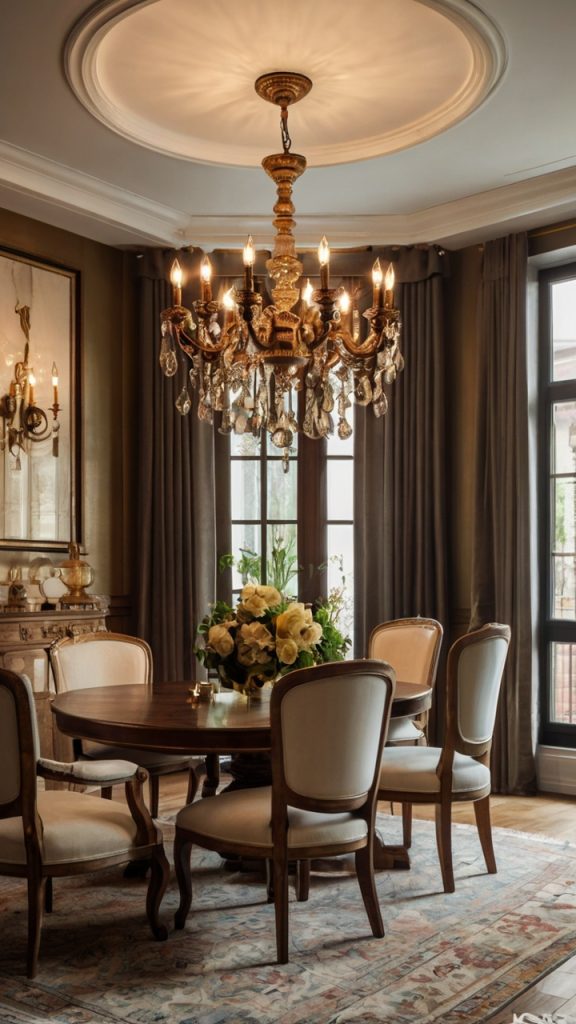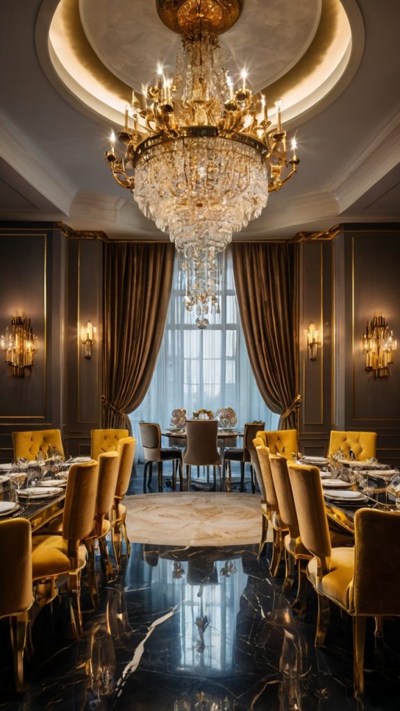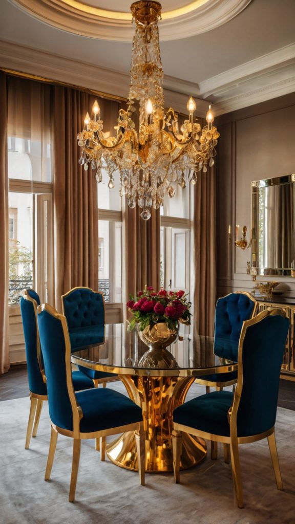 Sometimes you just need to go big or go home, right? Gold chandeliers bring instant glamour that makes every meal feel like a special occasion.