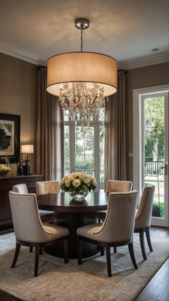 I recommended a linen drum shade chandelier to my aunt who wanted something “nice but not too fancy,” and it turned out perfect. The soft, diffused light creates an intimate atmosphere that makes everyone look good (seriously, it’s like having a beauty filter for your dining room).