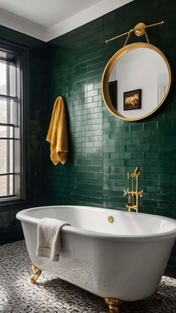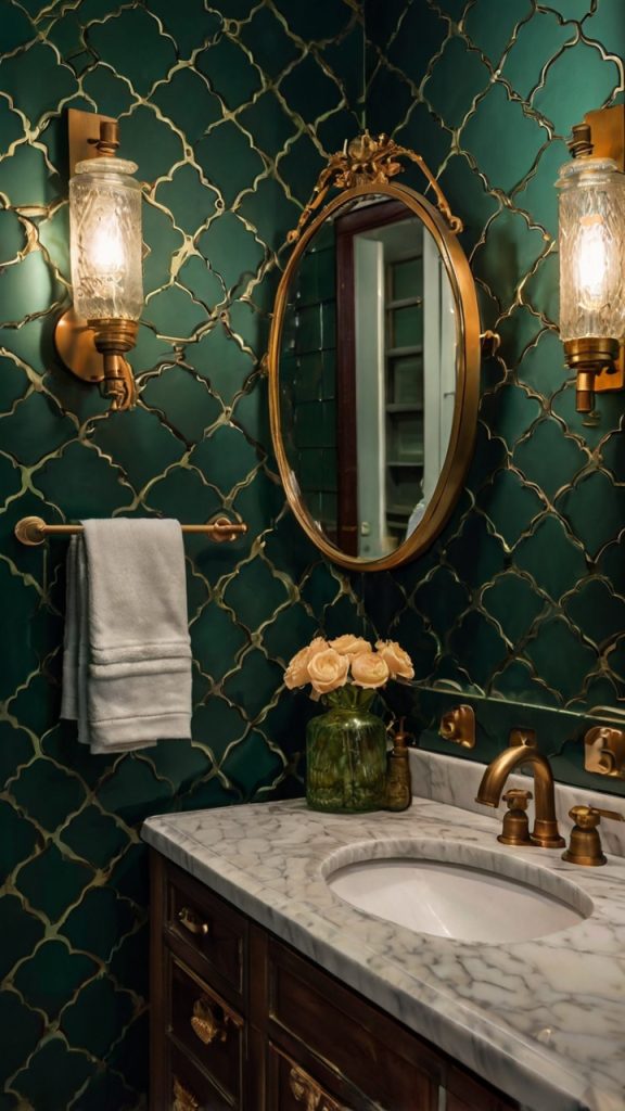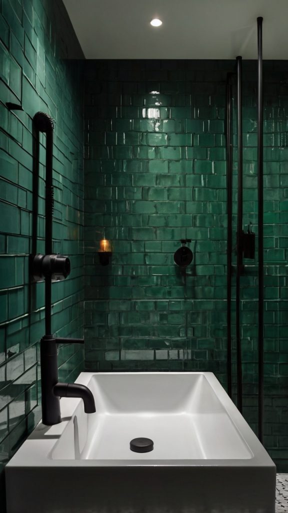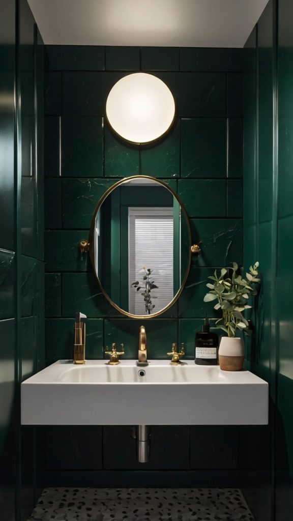 Pairing dark green with vintage elements creates this timeless look that feels both fresh and nostalgic. It’s like your bathroom has been there forever but also just got renovated yesterday.