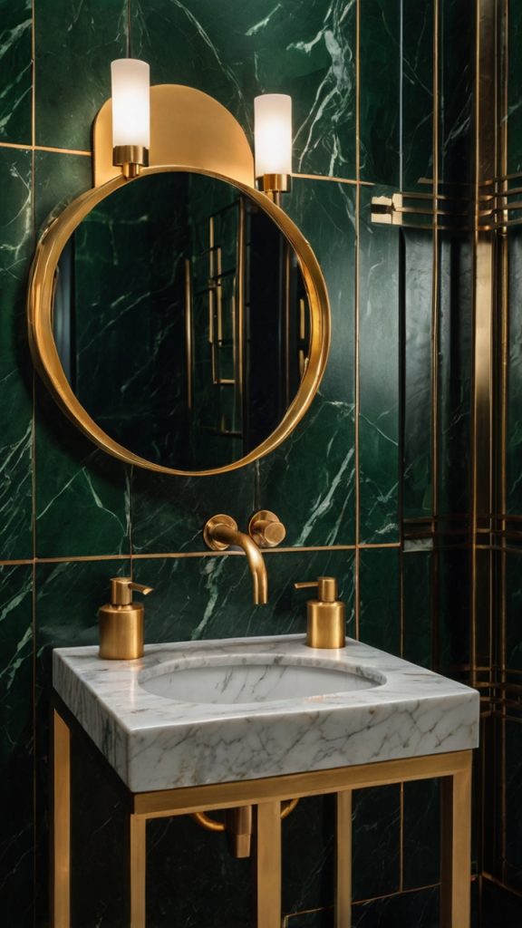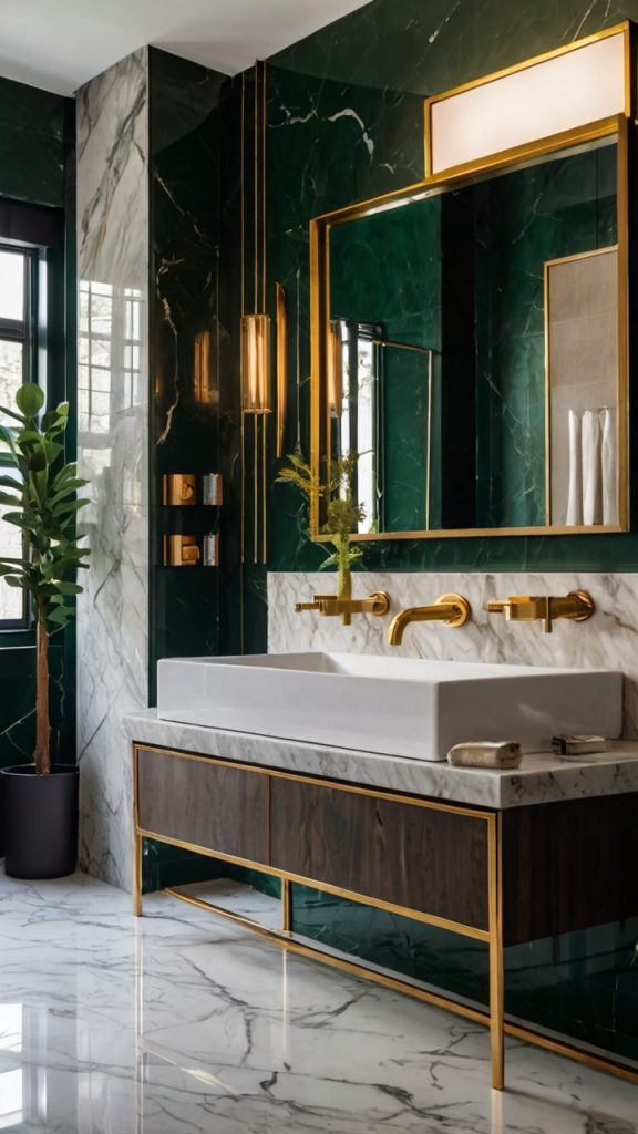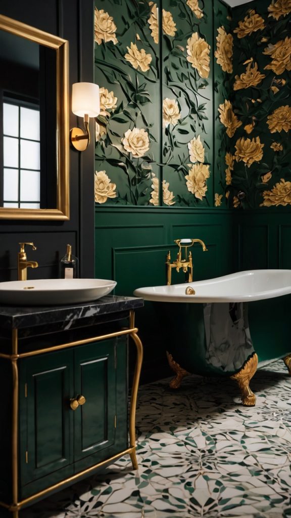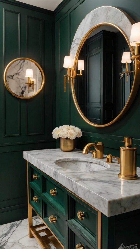 Let me tell you, the combination of dark green and gold is pure magic. I recently helped my sister redesign her master bath with this combo, and now everyone who visits asks if she hired a professional designer. She didn’t – we just knew this pairing works like peanut butter and jelly, except way more sophisticated.
