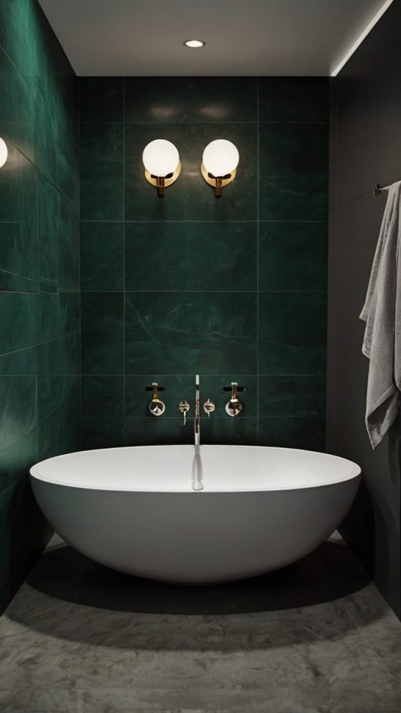 Lighting can make or break your dark green bathroom. Get it wrong and you’ve got a cave. Get it right and you’ve got a moody masterpiece.