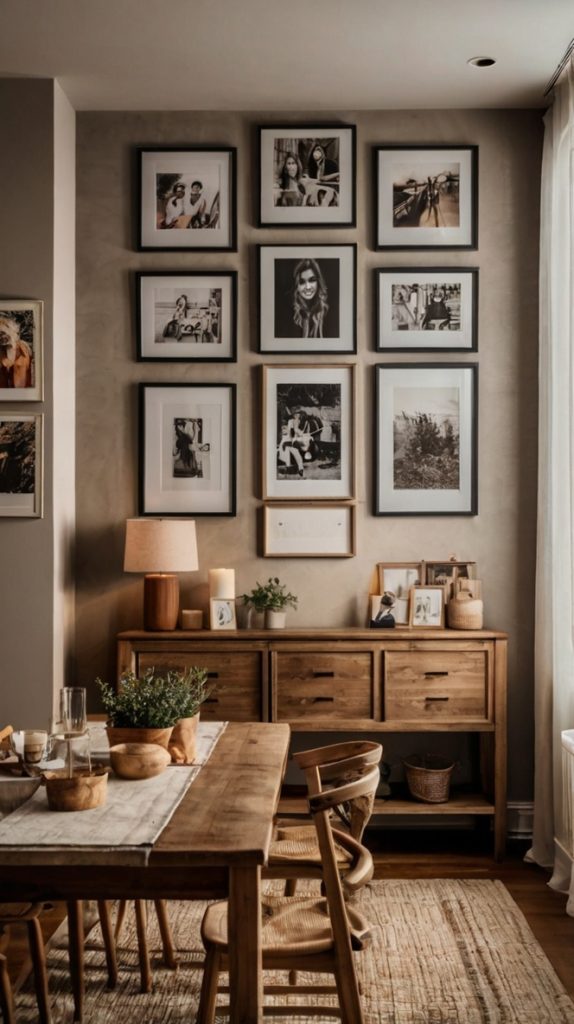 Let’s kick things off with something that never gets old – the classic gallery wall. But here’s where most people mess up: they think gallery walls need to look like something from a museum. Nope! Your family photos deserve the spotlight, and your dining room is the perfect stage.