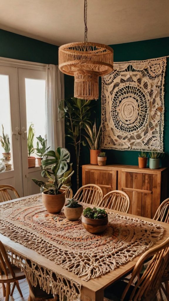 Last but definitely not least, macramé brings texture and bohemian vibes that make any space feel more relaxed. It’s like the dining room equivalent of putting on your favorite sweater.