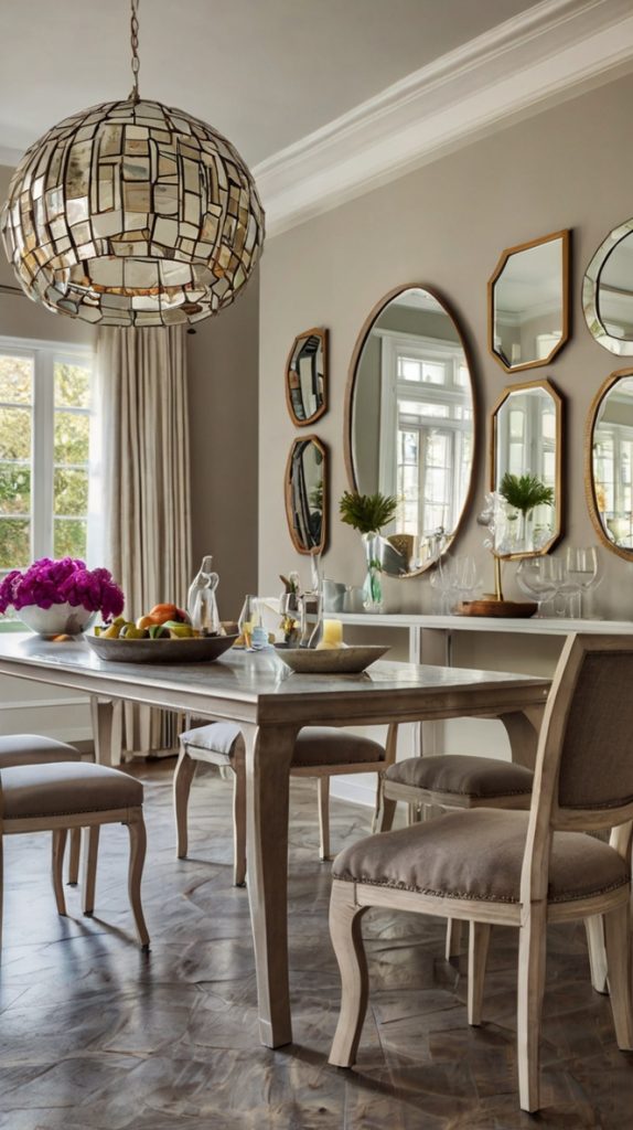 Mirrors are basically magic for small dining rooms. They reflect light, create illusion of space, and make everything look twice as fancy. A well-planned mirror collage? That’s next-level decorating.