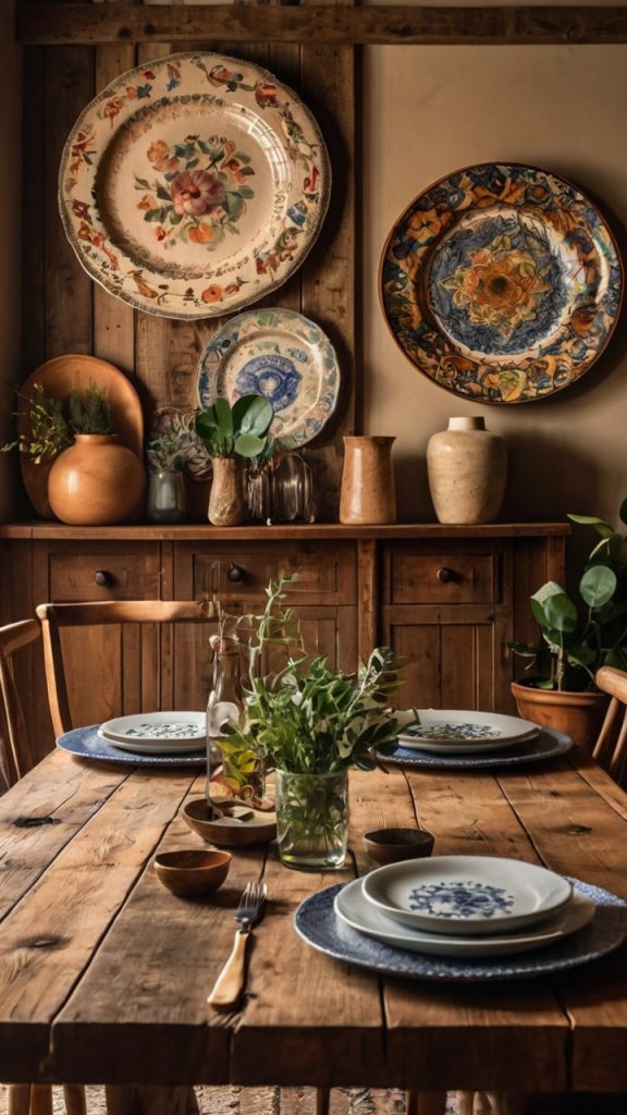 Your grandmother was onto something with her plate collection. Vintage plates create a charming, eclectic display that’s both nostalgic and surprisingly modern when done right.