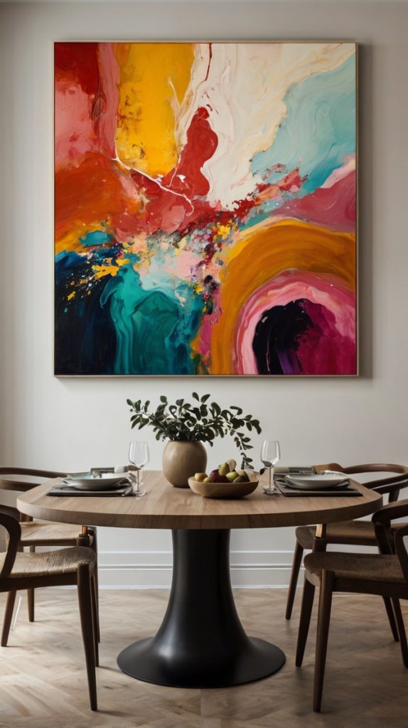 I splurged on a massive abstract piece two years ago, and honestly? Best dining room investment ever. It sparks more conversations than my cooking does (which might not be saying much, but still).