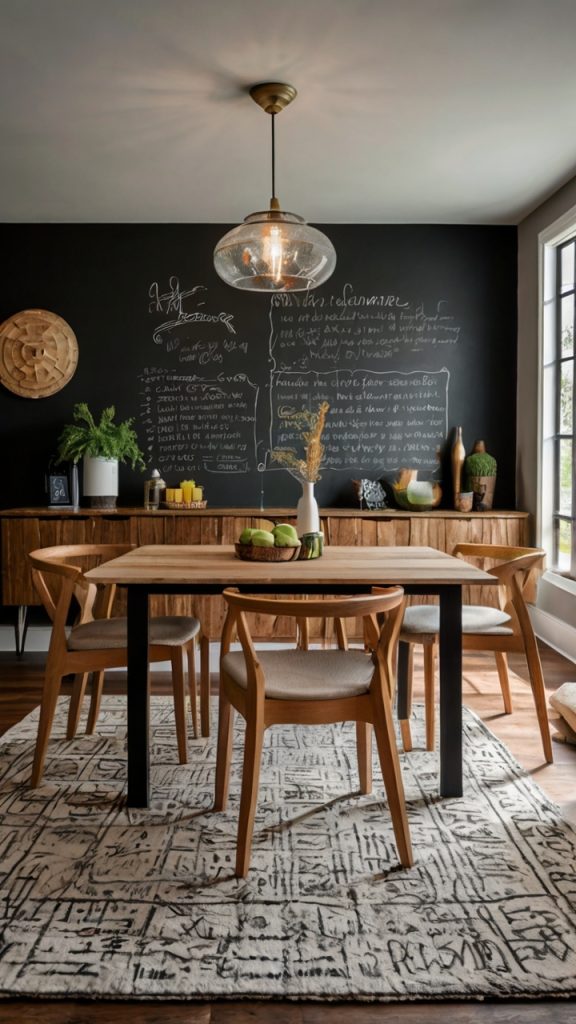 Want to know what’s both practical and stylish? A chalkboard wall where you can write menus, quotes, or passive-aggressive reminders about doing dishes. Just kidding on that last one (sort of).