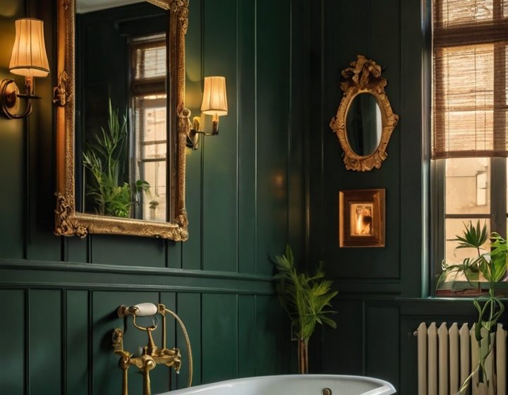 The trick with gold is restraint. You want touches of gold, not a Vegas casino vibe. Think gold faucets, mirror frames, or light fixtures against those deep green walls. IMO, matte gold works better than shiny gold here – it feels more sophisticated and less flashy.