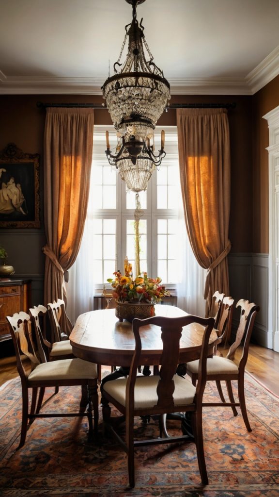 My parents nailed this style without even trying. Their dining room features a pedestal table, Queen Anne chairs, and a china cabinet that’s been in our family forever. Every meal there feels like an event, even if we’re just eating leftover pizza.