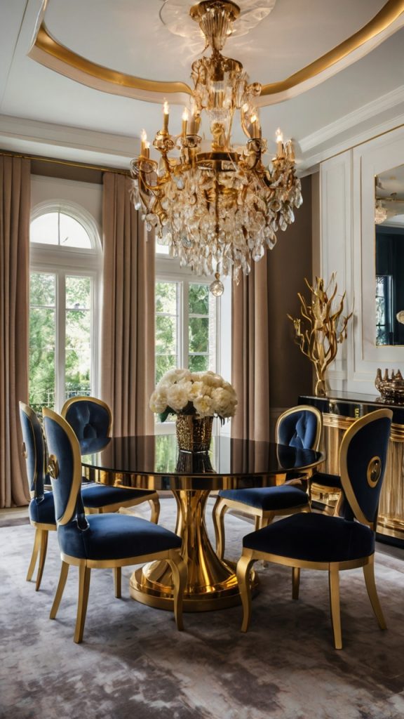 Ready to channel your inner maximalist? Gold accents in formal dining rooms create instant drama and luxury. But here’s the thing – you need to walk that fine line between glamorous and gaudy.