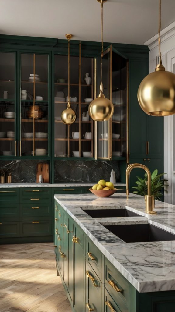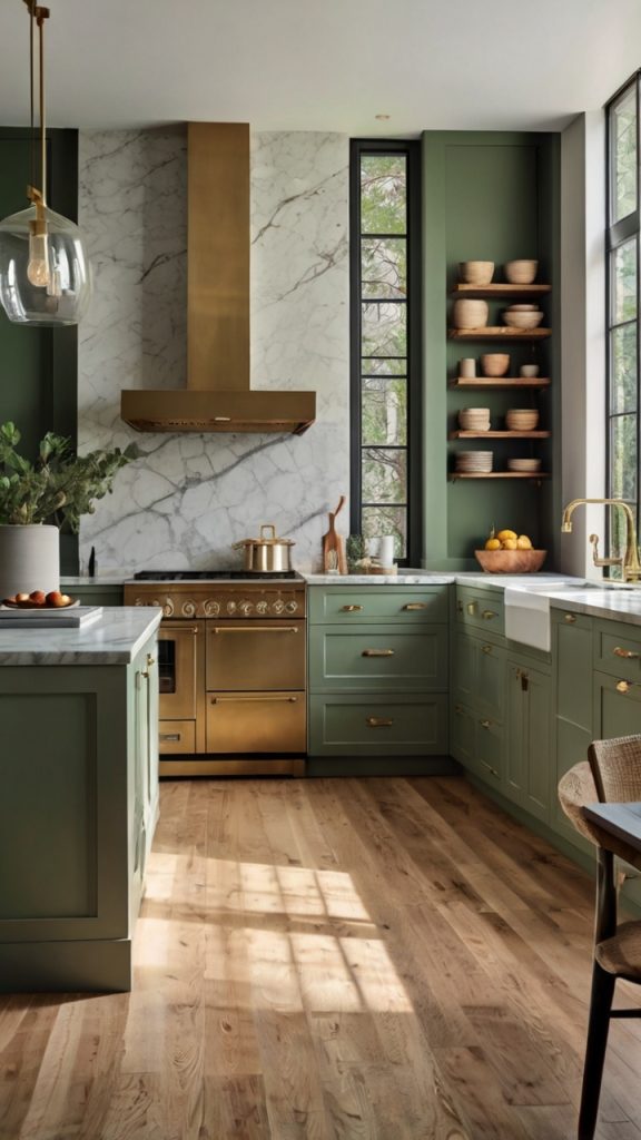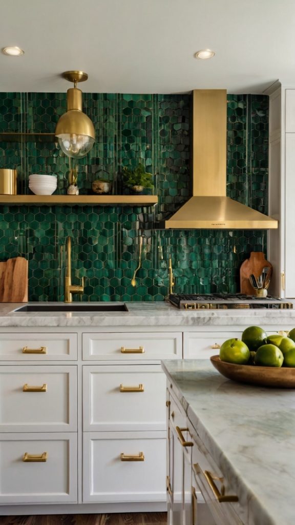 Nothing says luxury quite like white marble countertops, but pair them with a green backsplash? Now you’re cooking with gas (pun intended). The veining in marble plays beautifully with green tones, creating this organic, flowing aesthetic that feels both natural and refined.
