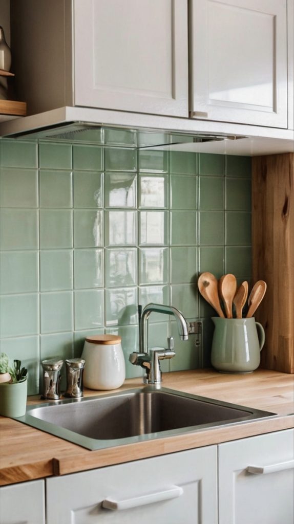 Soft Pastel Green Kitchen Tile Ideas