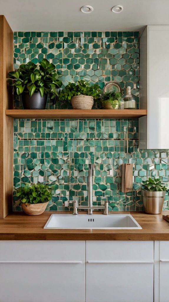 Green Mosaic Tile Accent Wall