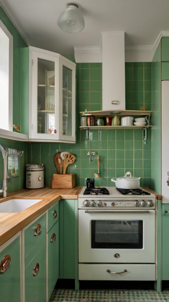 Vintage Green Subway Tile Kitchen