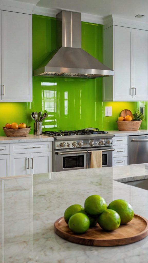 Bright Lime Green Glass Backsplash
