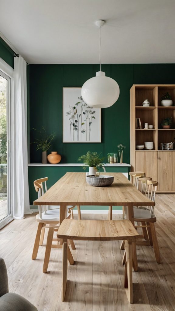 Scandinavian design and green make an unexpectedly perfect match. The clean lines and functional beauty of Nordic style combined with green’s natural warmth creates dining rooms that feel both sophisticated and livable.