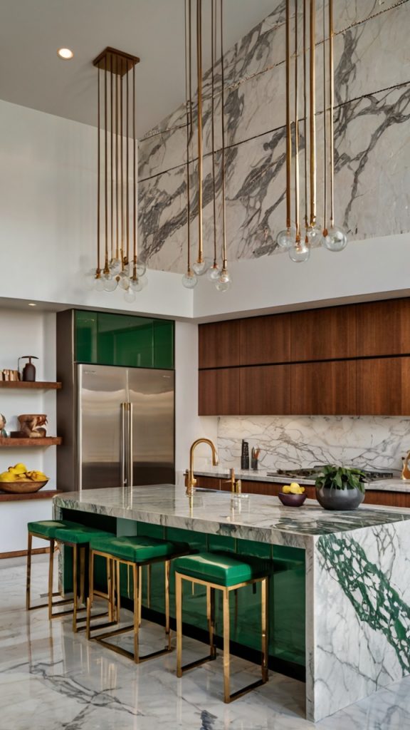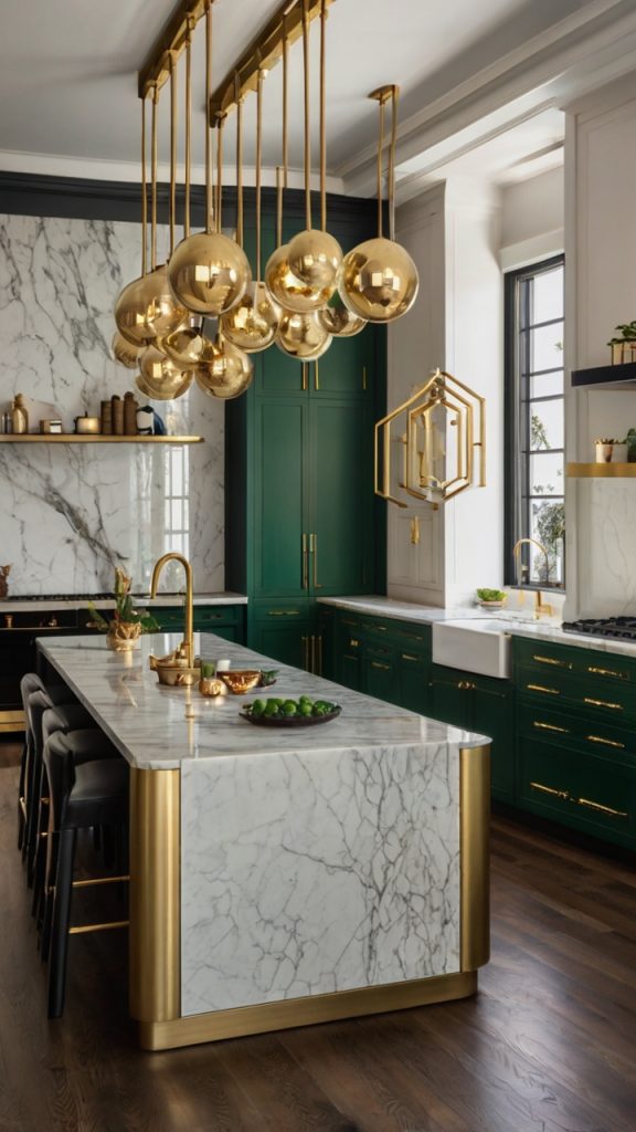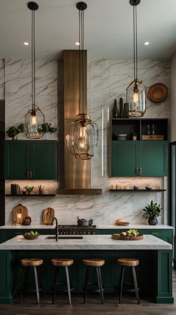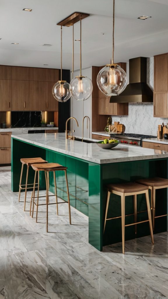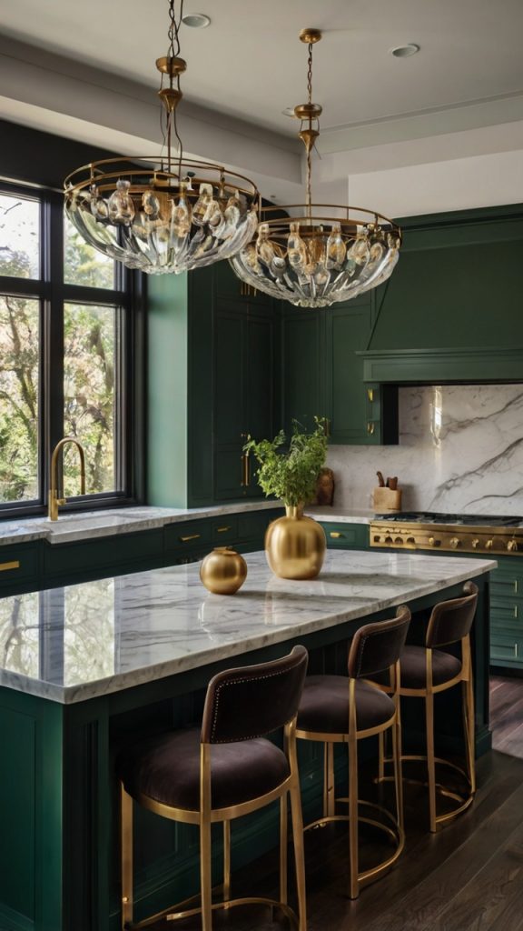 Want to feel fancy every time you walk into your kitchen? An emerald green island topped with marble delivers luxury vibes without the crazy price tag of a full renovation.